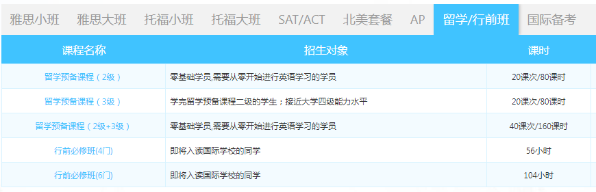 雅思起步6分小班、雅思预备6分小班、雅思入门6分小班、雅思精品6分小班、雅思起步6.5分小班、雅思预备6.5分小班、雅思入门6.5分小班、雅思精品6.5分小班、雅思强化6.5分小班、雅思入门7分小班、雅思精品7分小班、雅思强化7分小班、雅思考前速递小班、雅思写作单项班、雅思口语单项班。
