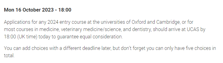 往年牛津、剑桥以及医学类专业的申请截止日期均为10月15日,但2024年的截止日期推迟到了10月16日。